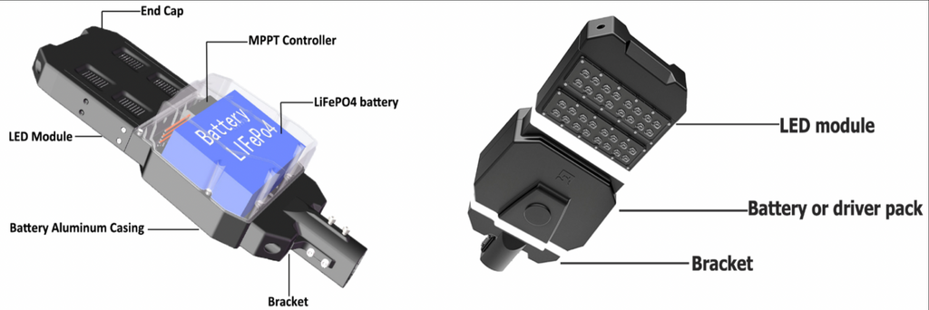 Système de lampadaire solaire tout-en-deux qui combine les éléments d'énergie verte de la lampe à DEL, du contrôleur intelligent et de la batterie Li-FePO4 en un seul produit, mais avec un panneau solaire séparé. ce produit tout-en-deux, associé à un détecteur de mouvement, offre une solution de faible consommation d'énergie, de longue durée et de haute luminosité, ainsi qu'un entretien gratuit pendant au moins 6 à 8 ans.