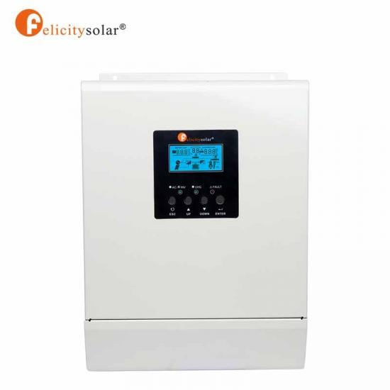 Felicitysolar sort son nouveau modèle d'onduleur hybride pour l'alimentation des systèmes solaires domestiques. Puissance : 1000va(1kva/800w) avec contrôleur PWM 50A intégré.Tension de transit de DC12V à AC220V.